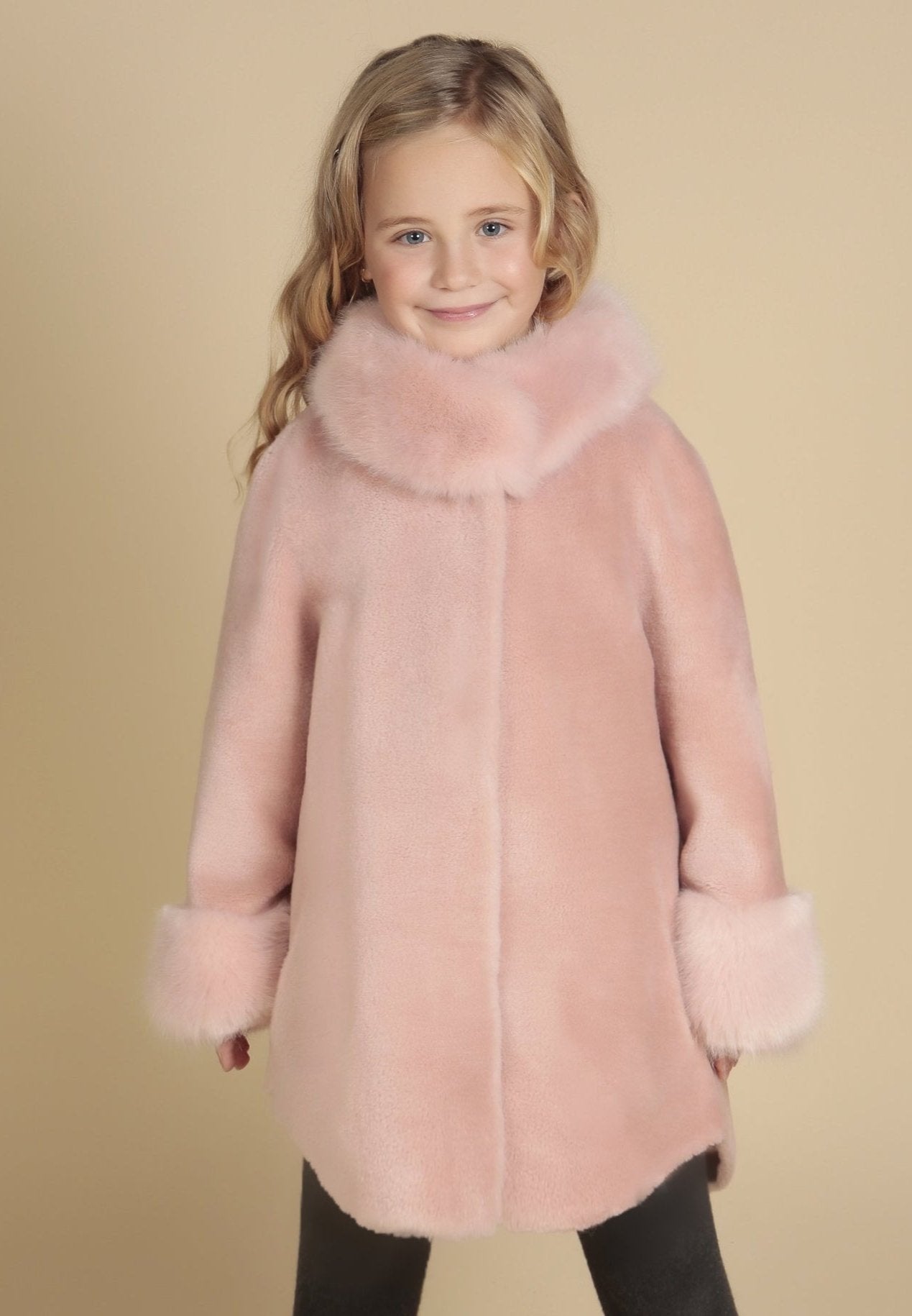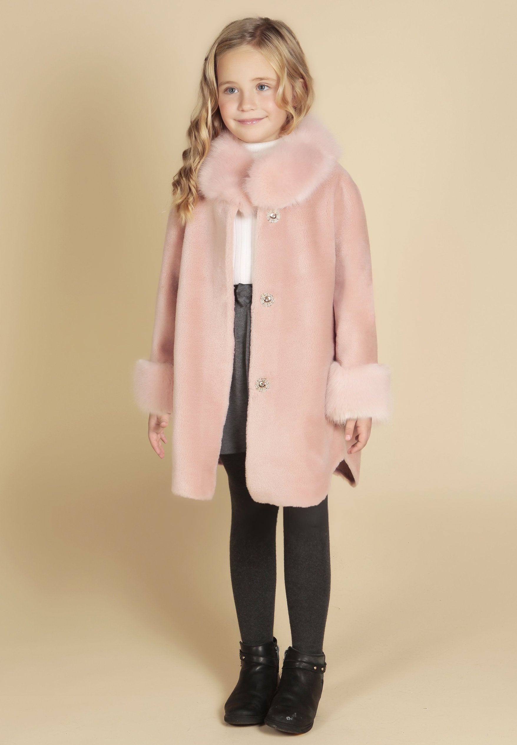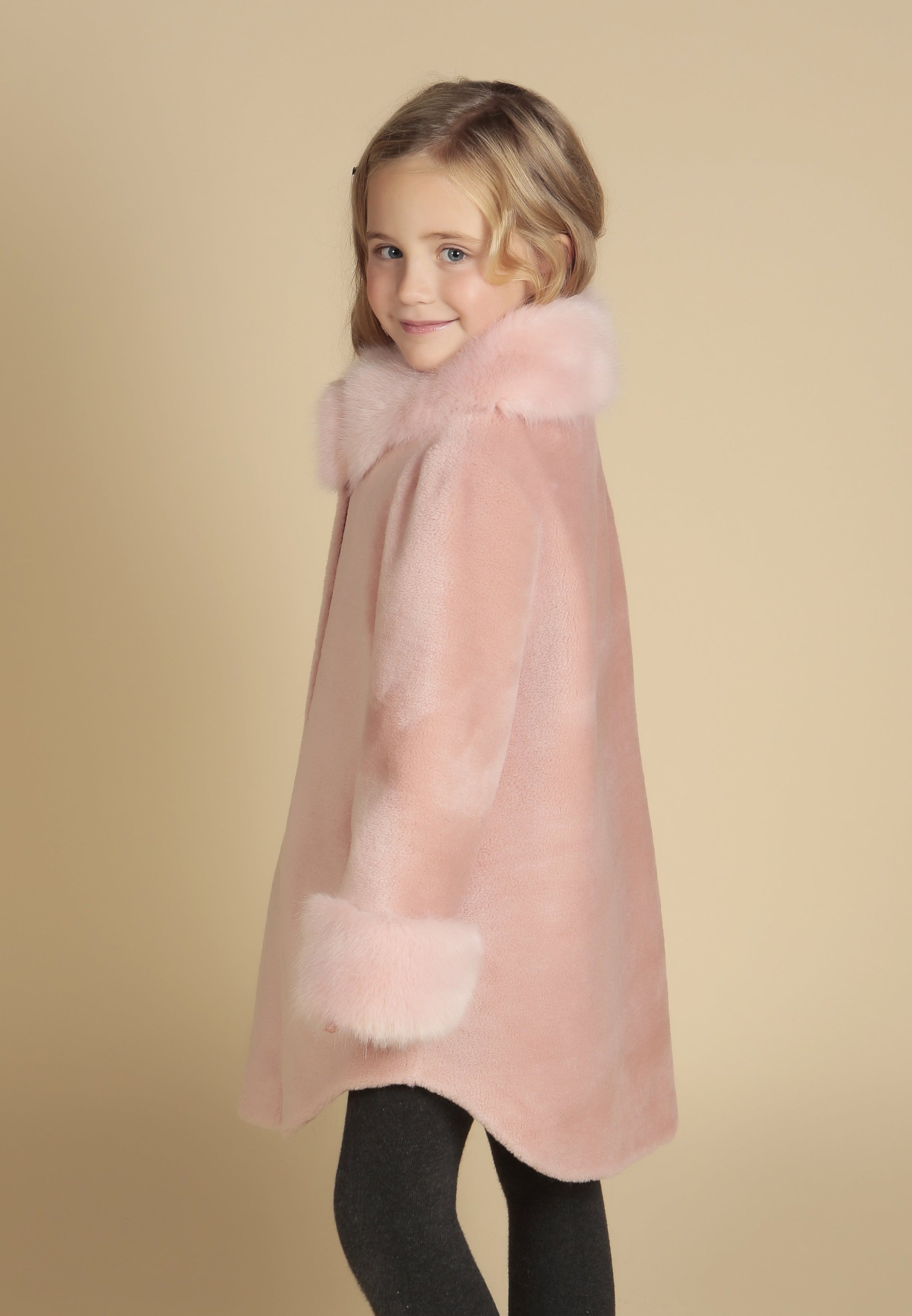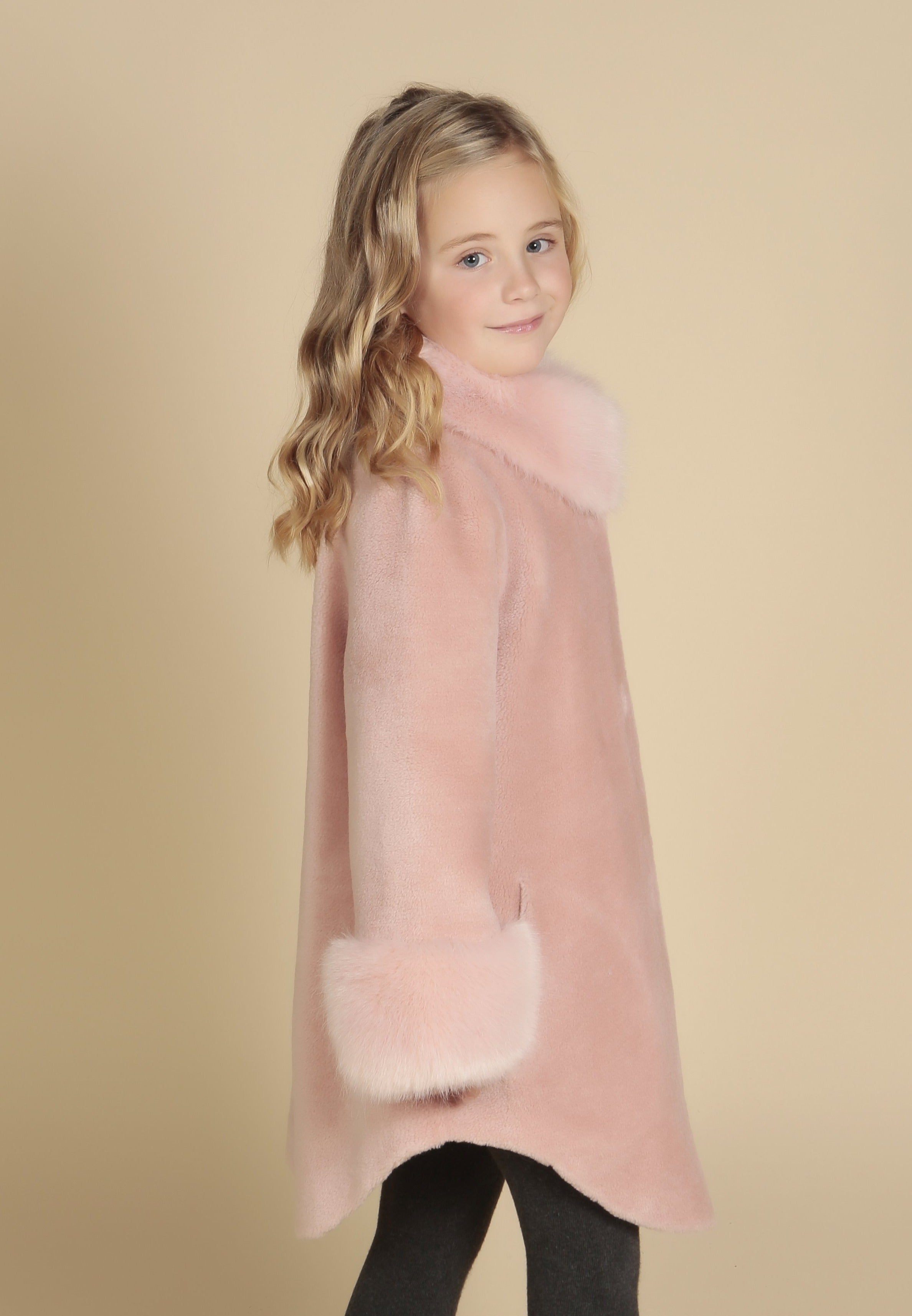 This playful piece is an homage to the bubbly 60s, re-imagining the classic cape coat with this handcrafted 100% luxurious wool piece. Lined at the collar and cuffs with sumptuous and incredibly soft Faux Fur for an exceedingly regal look, this little piece will make your little lady feel like a princess!