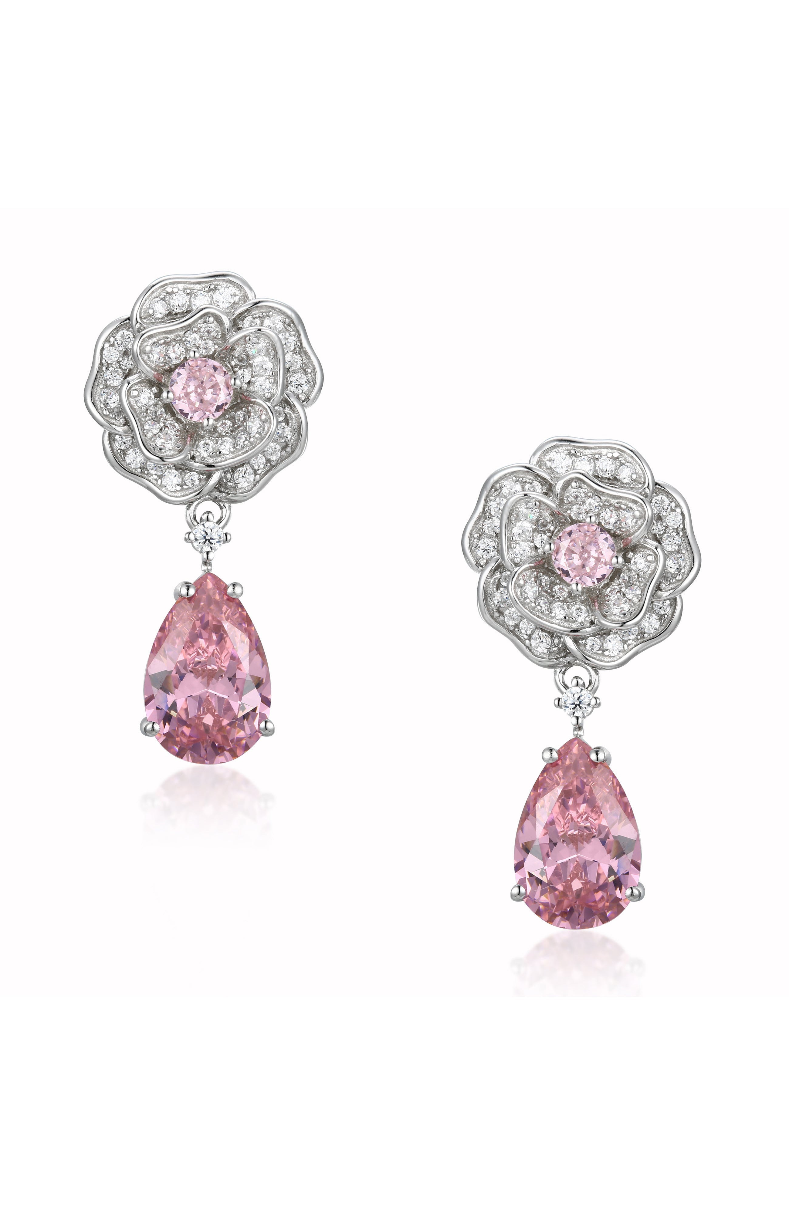 ๐ŸŽ 'Baroness' Flower and Pink Crystal Drop Silver Earrings (100% off)