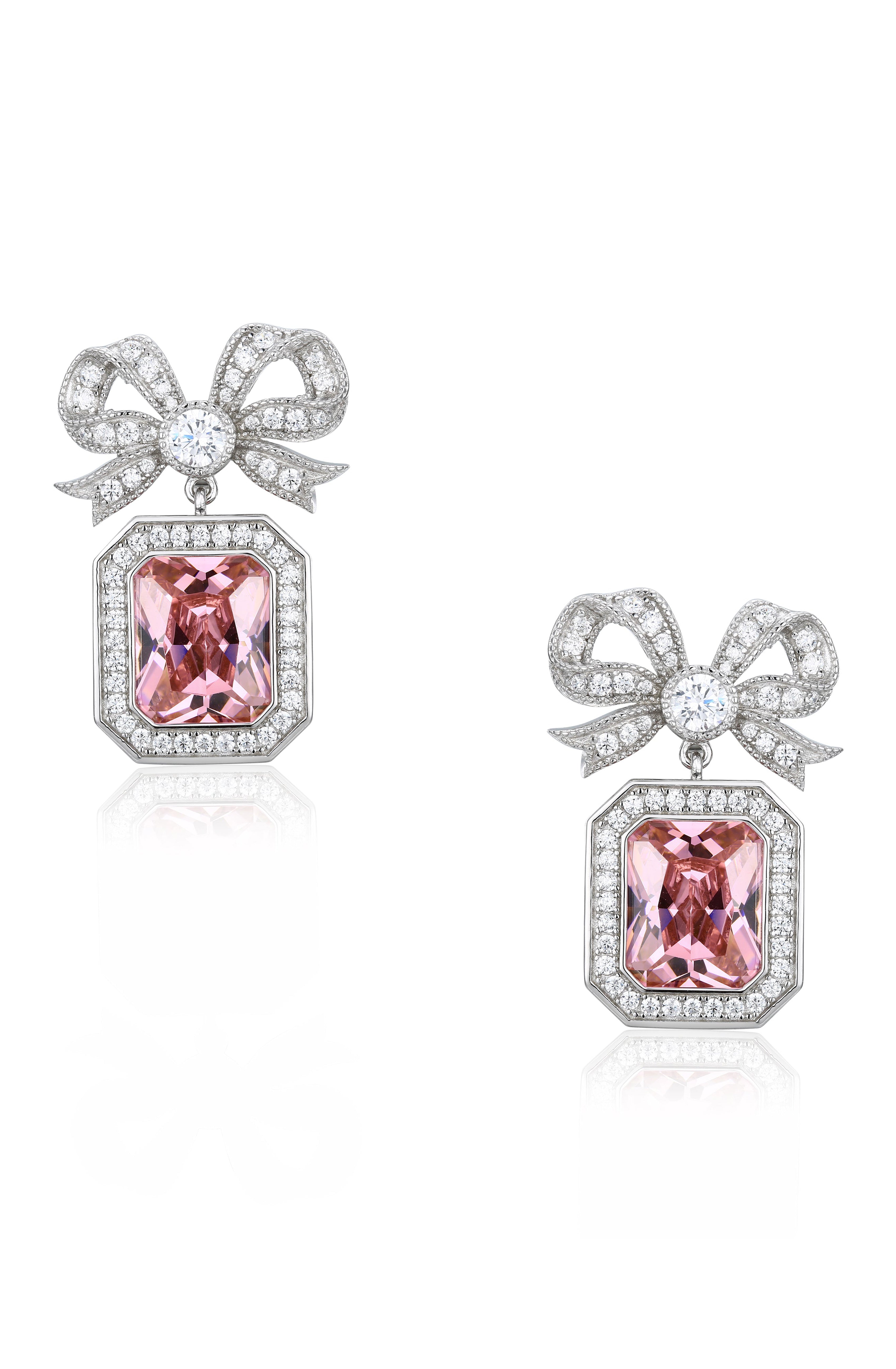 ๐ 'Empress' Bow and Pink Radian Cut Crystal Silver Earrings (100% off)