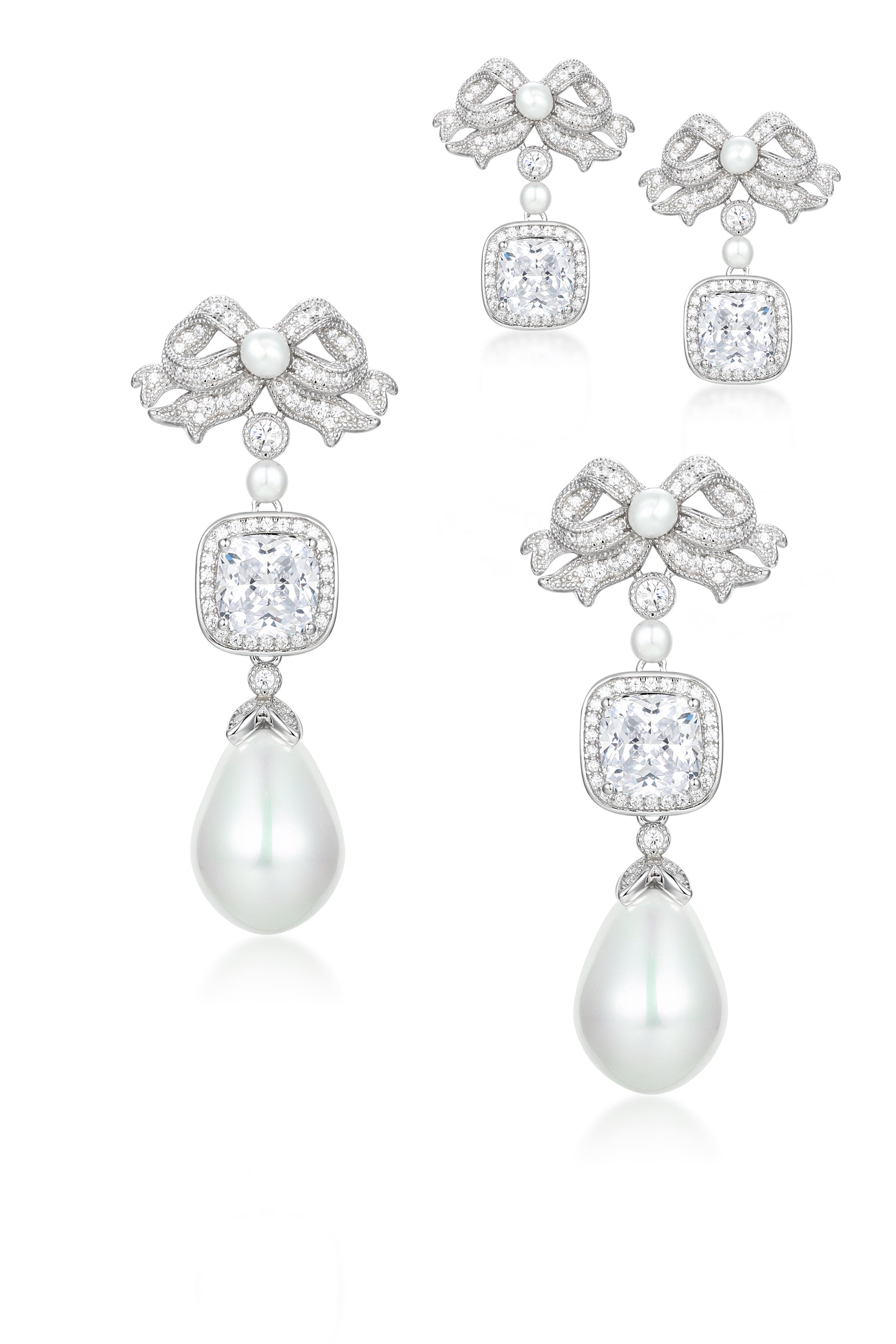 ๐ŸŽ 'Marie Antoinette' Cushion-Cut Crystal and Bow Silver Earrings (100% off)
