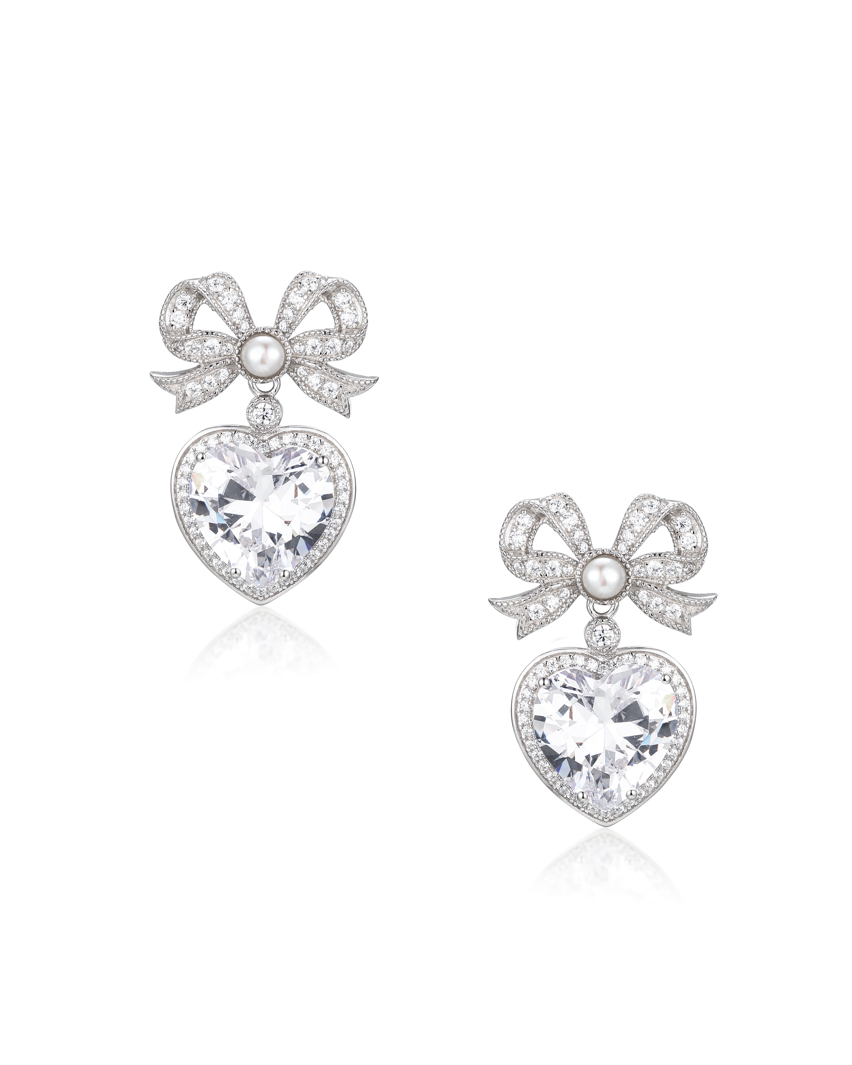 ๐ 'Princess' Bow and Crystal Heart Silver Earrings With Pearl (100% off)