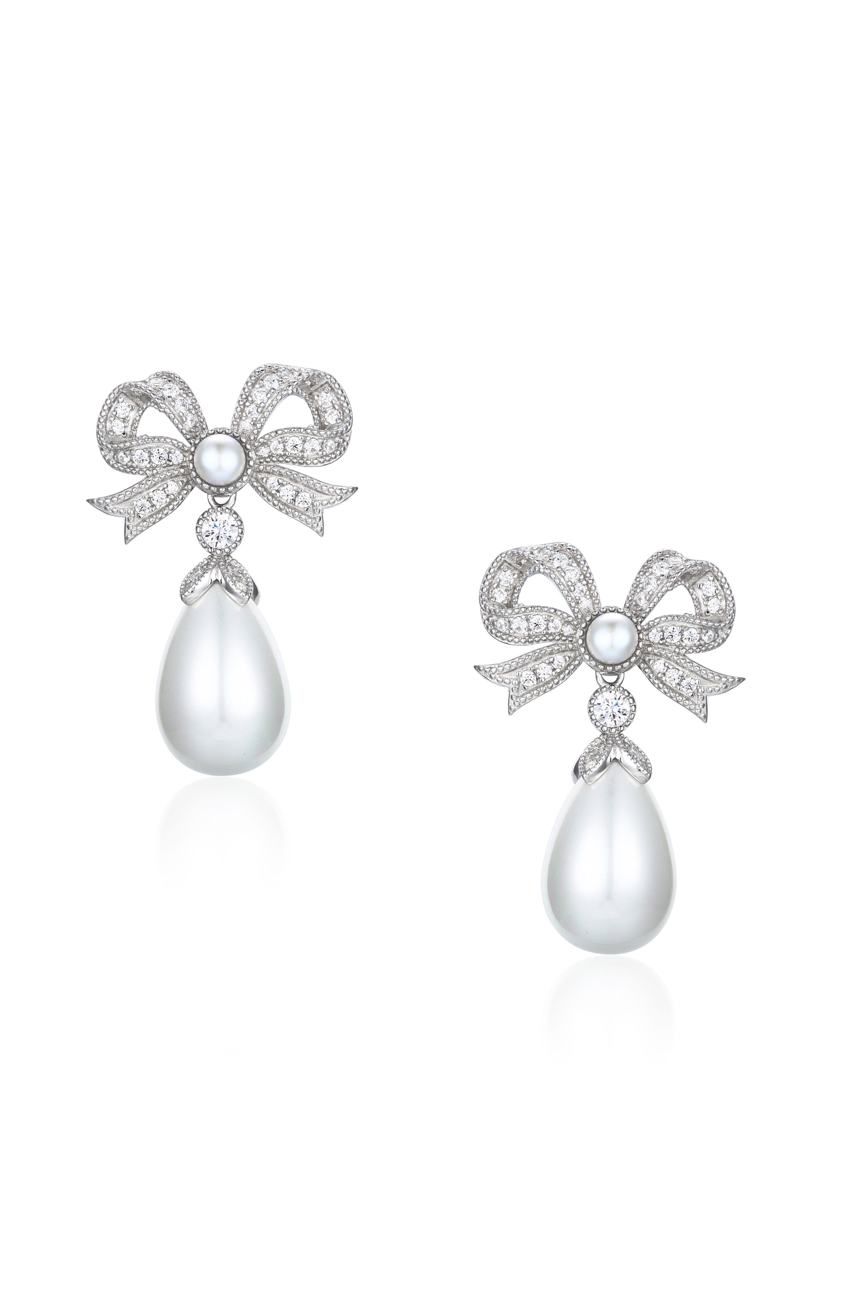 🎁 'Queen' Bow and Pearl Drop Silver Earrings (100% off)