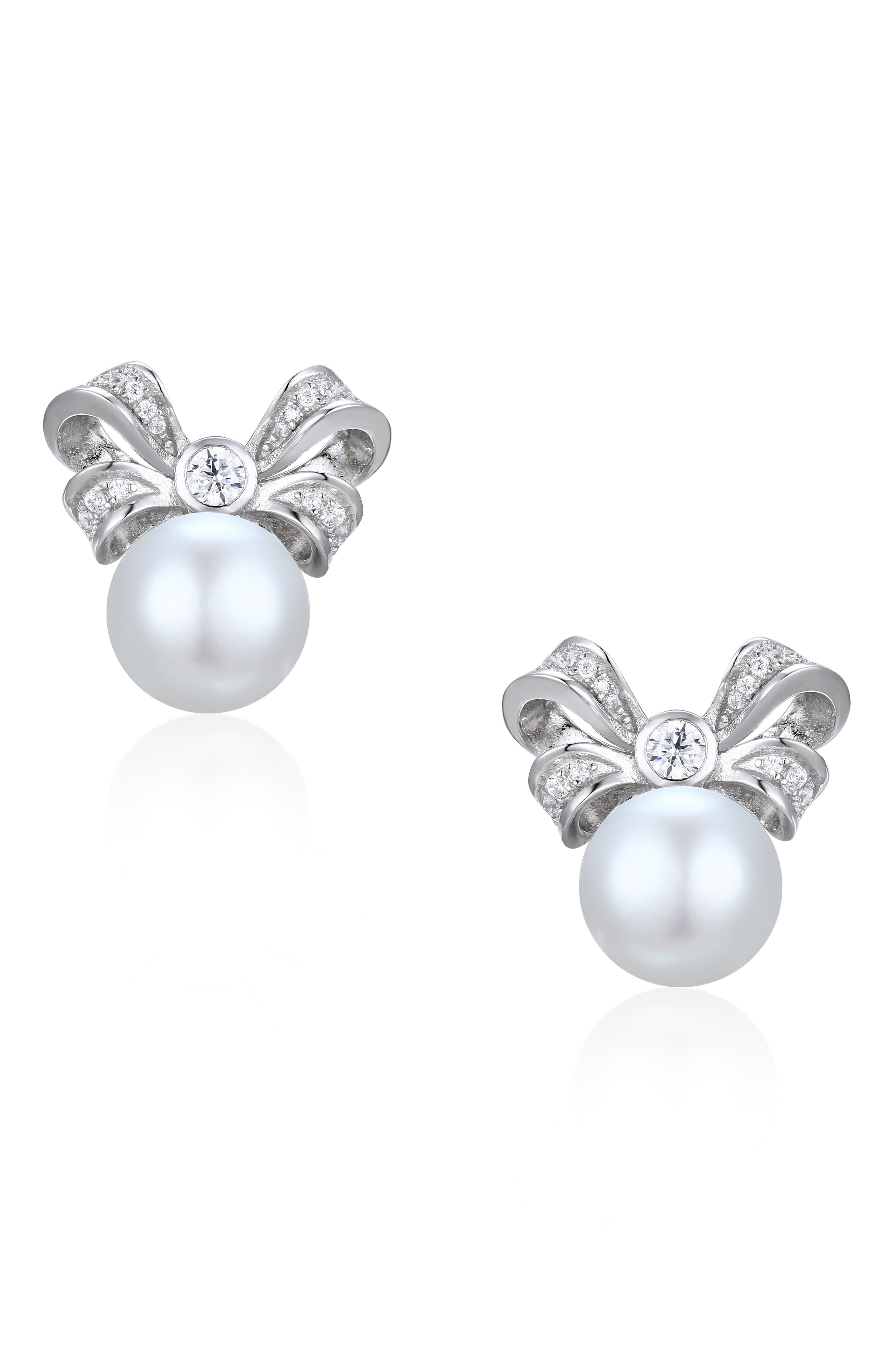 ๐ 'Viscountess' Bow and Pearl Silver Earrings with Crystals (100% off)