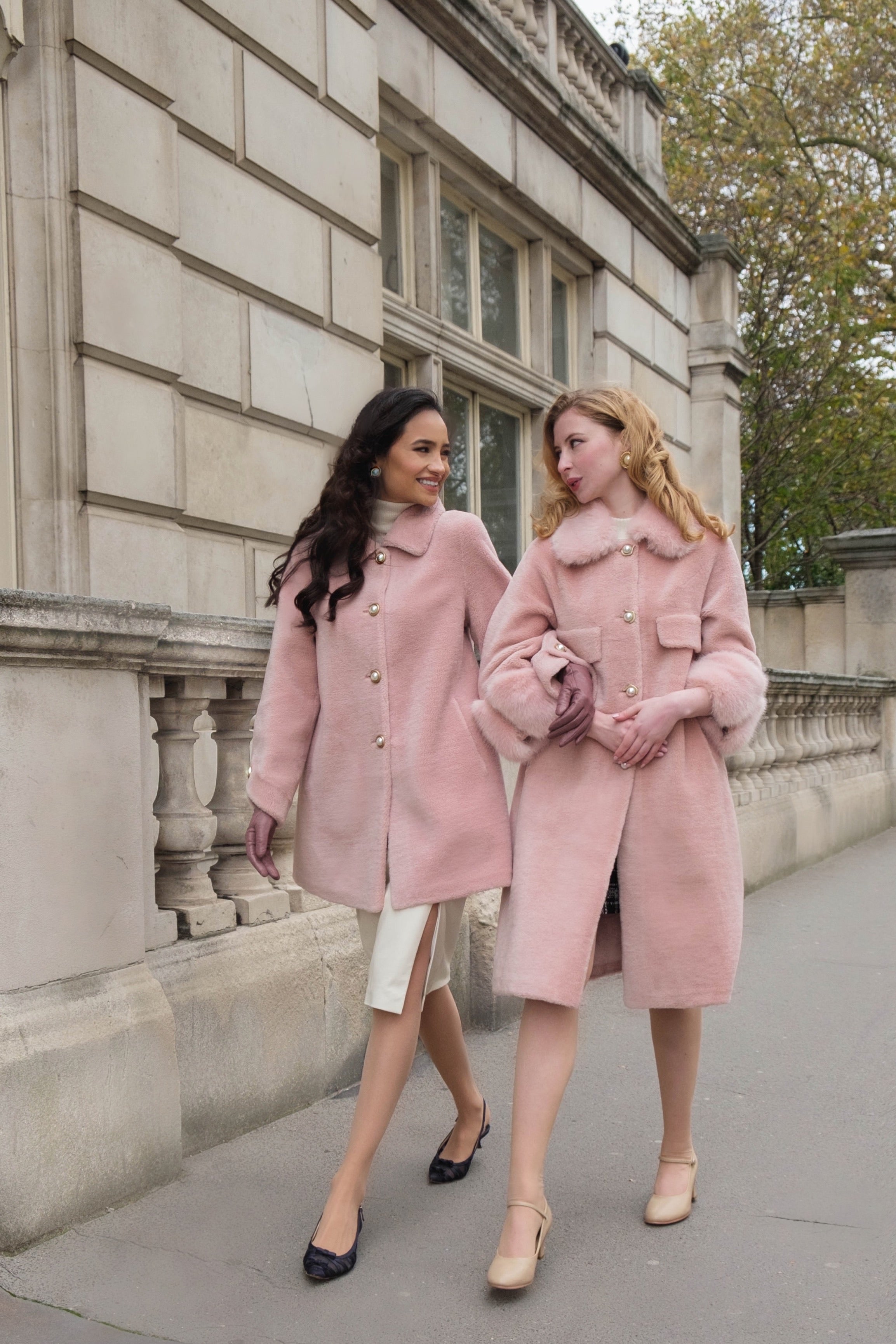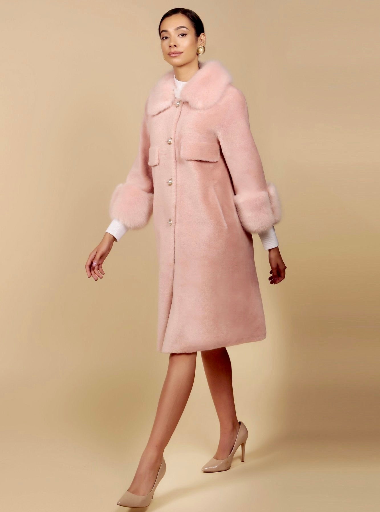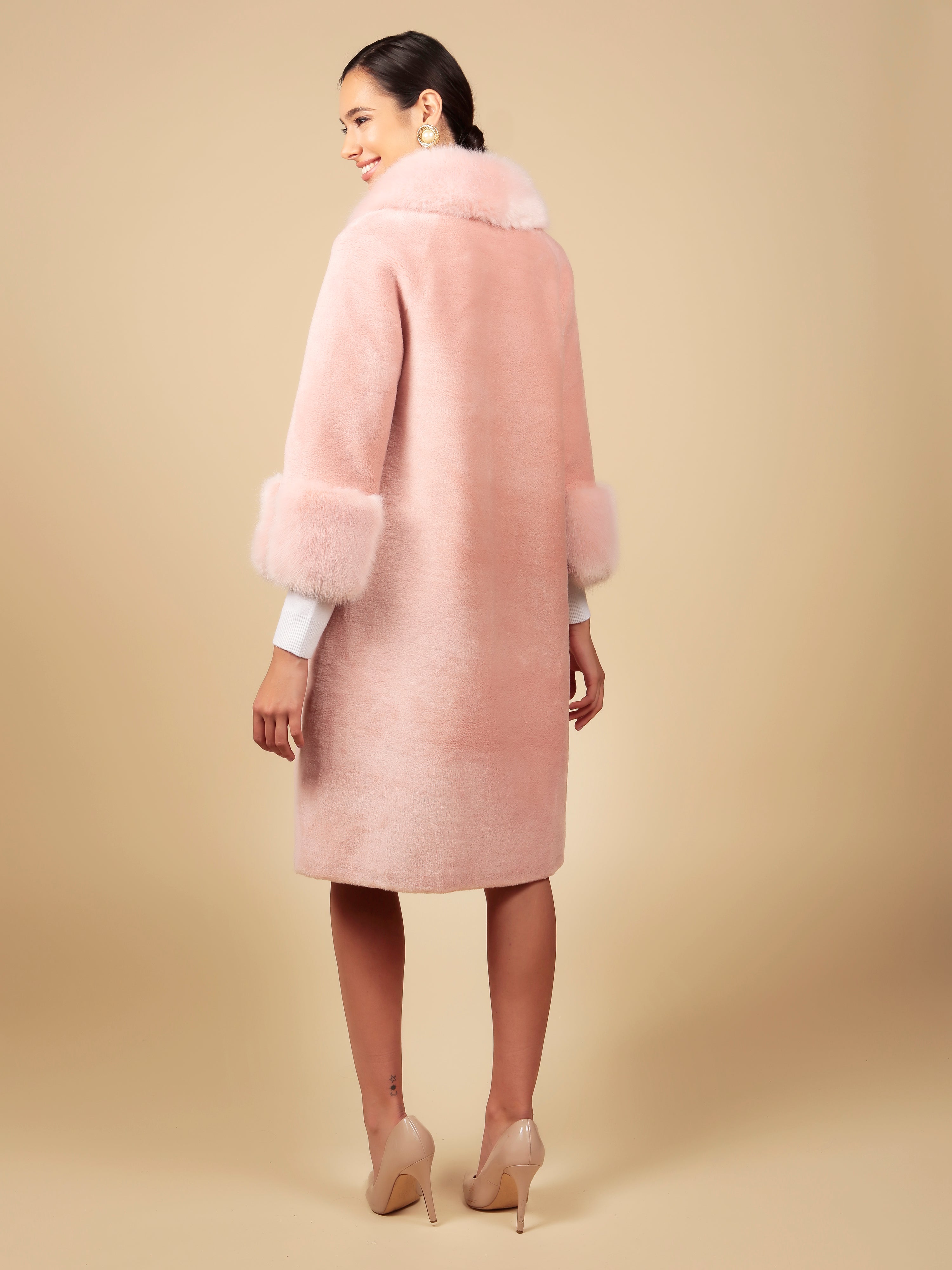 Wool and Faux Fur Coat in Rosa
