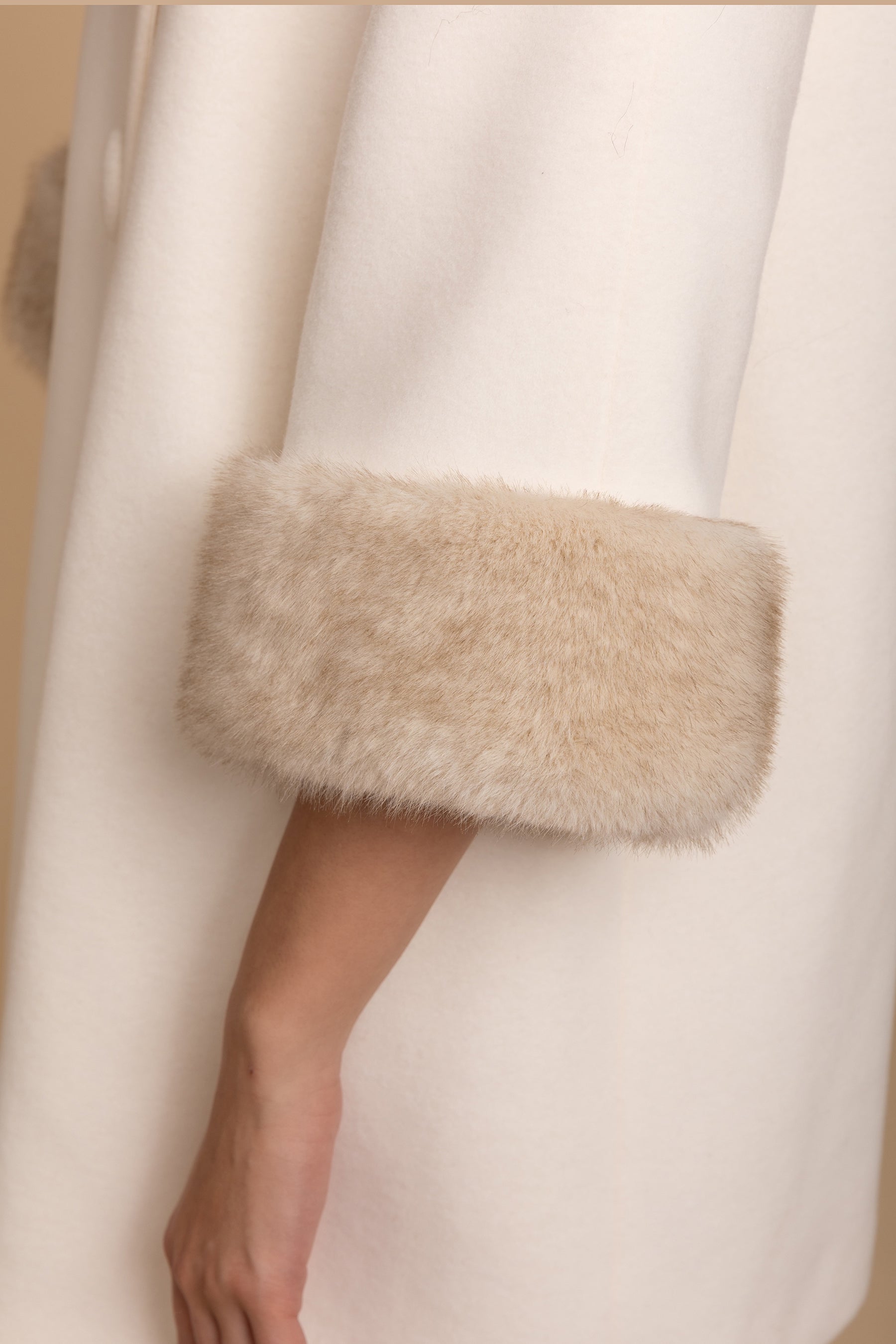Italian Virgin Wool and Cashmere Coat with Faux Mink