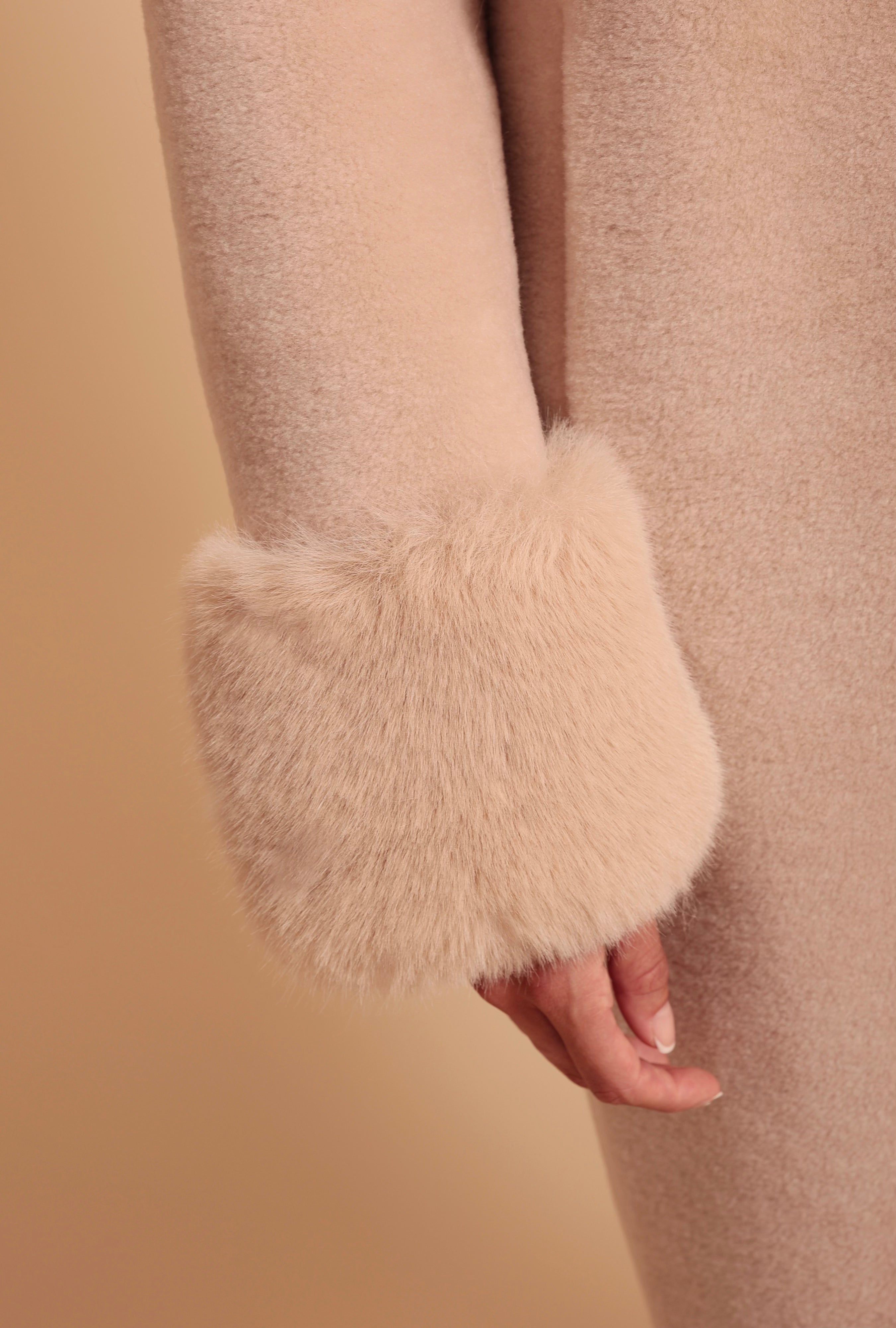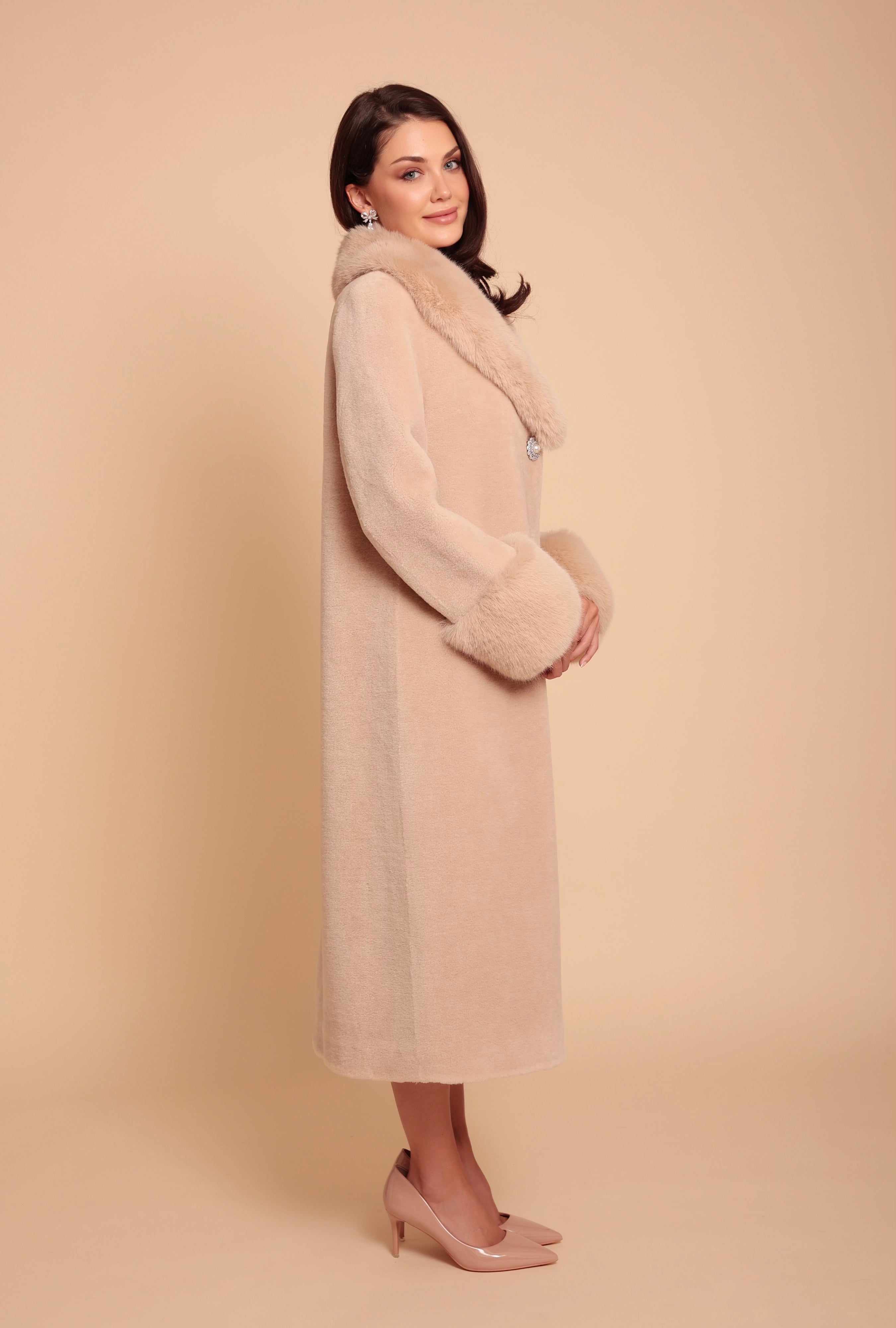 A timeless classic. 'Sunset Boulevard' is crafted from our signature 100% 'teddy-like' wool, and features a majestic faux fur collar, and cuffs. A magnificent jeweller-made brooch button gracefully completes this timeless design.