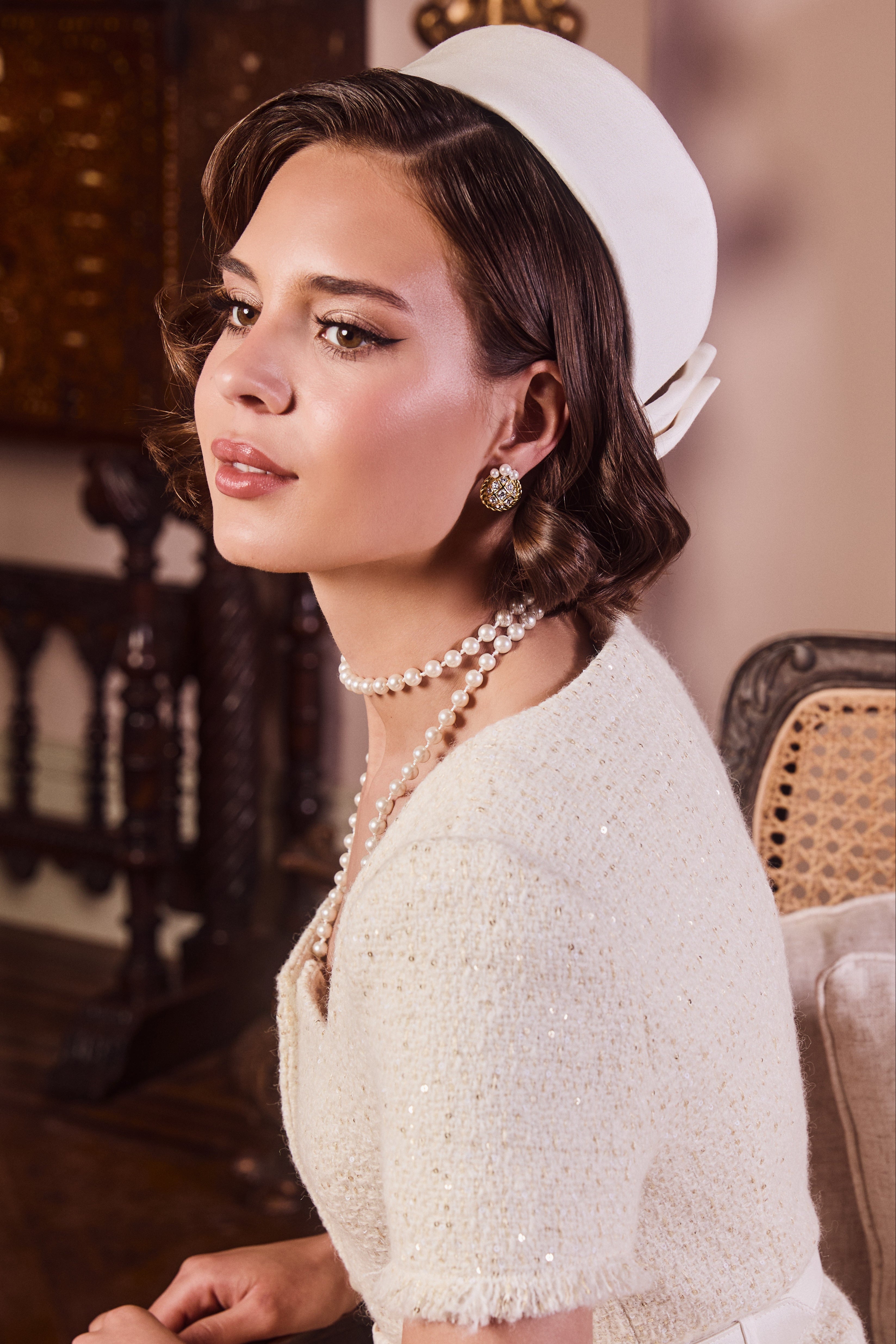 A definitive piece of headwear that is indispensable in every sophisticated lady’s wardrobe. Santinni's take on a classic pillbox hat, crafted from a silk and wool taffeta, and completed by a charming silk taffeta bow. Lined in sumptuous matching satin that is gentle on the hair and skin. Anchored in place by three comb clips. To be worn tilted slightly to the back of the head.