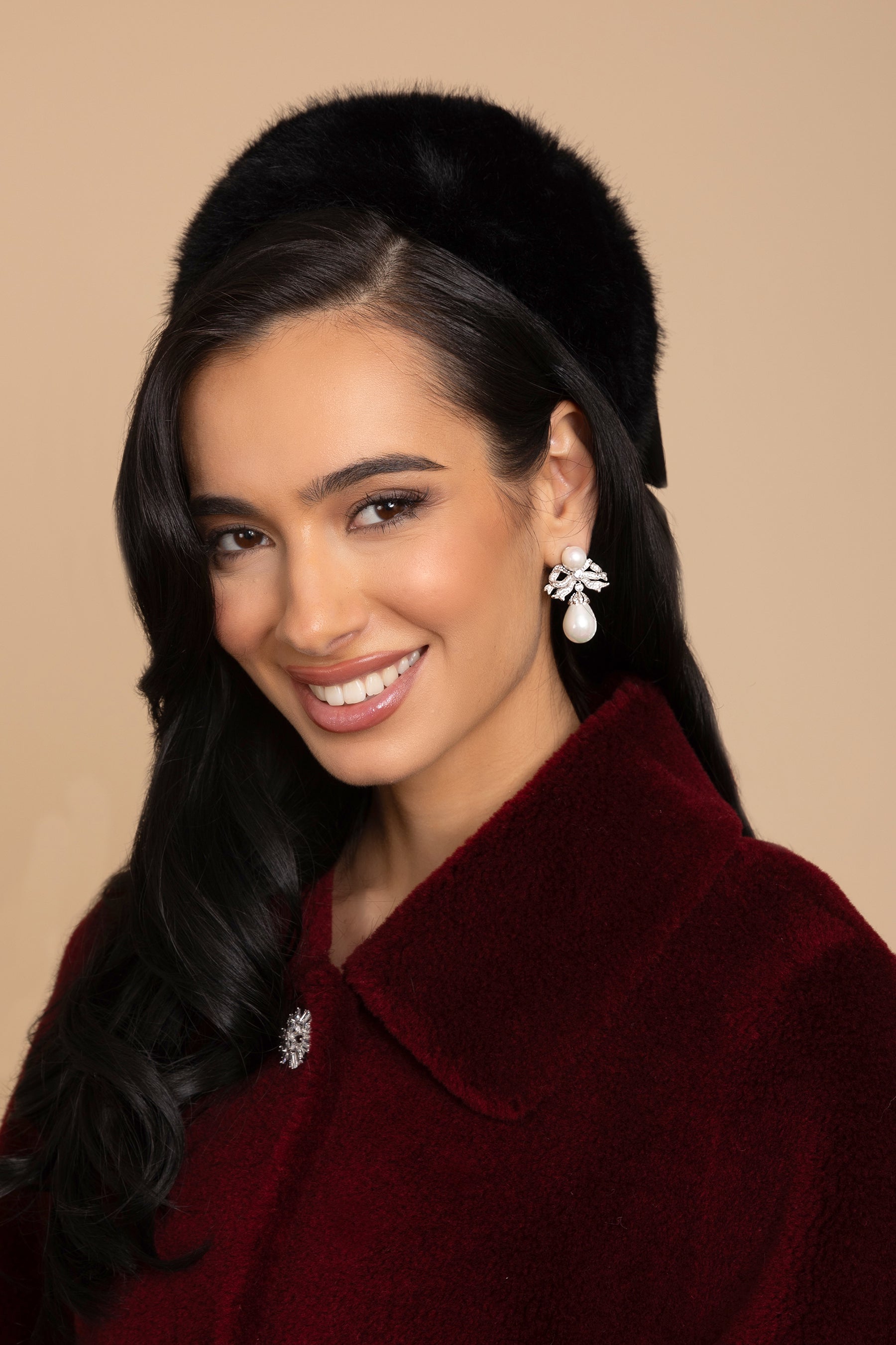 A definitive piece of headwear that is indispensable in every sophisticated lady’s wardrobe. Santinni's take on a classic pillbox hat, crafted from a silk and wool taffeta, lined in the finest faux fur, and completed by a charming silk taffeta bow. Lined in sumptuous matching satin that is gentle on the hair and skin. Anchored in place by three comb clips. To be worn tilted slightly to the back of the head.